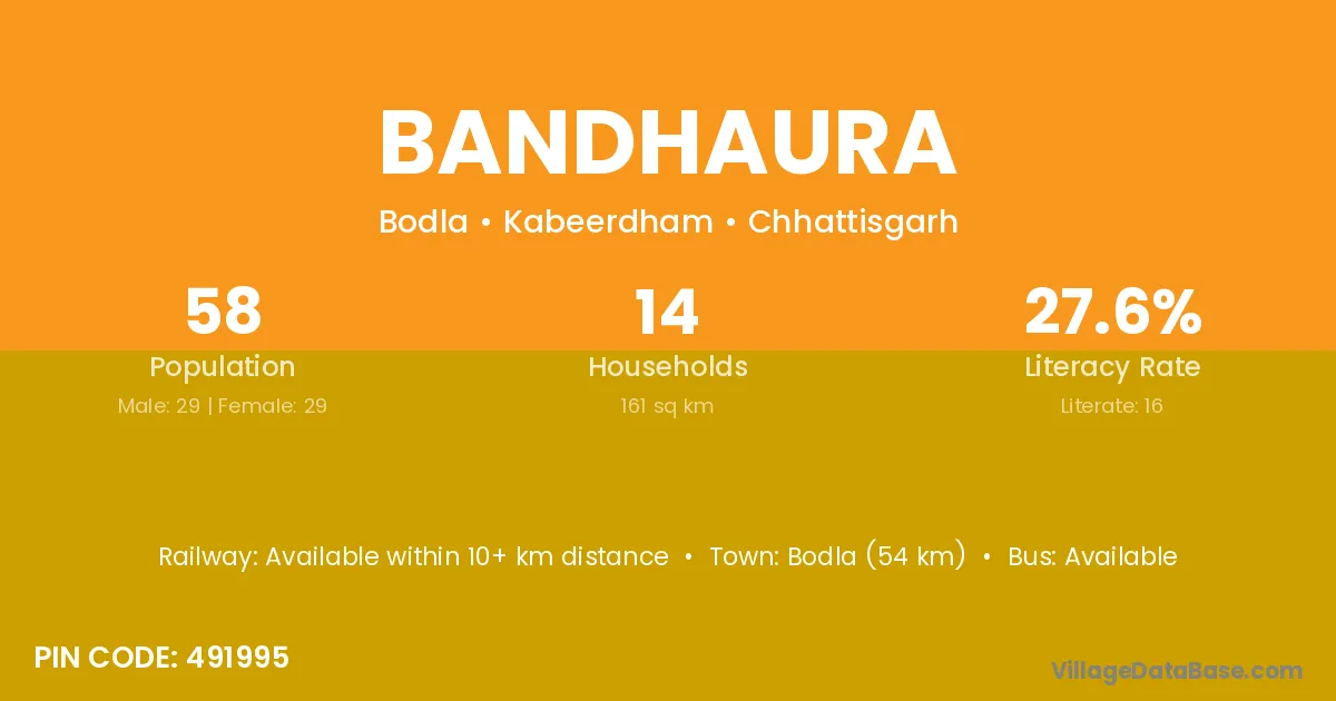Panna (96 km) is the nearest town to Bandhaura village for major economic activities and is located approximately 96 km away.