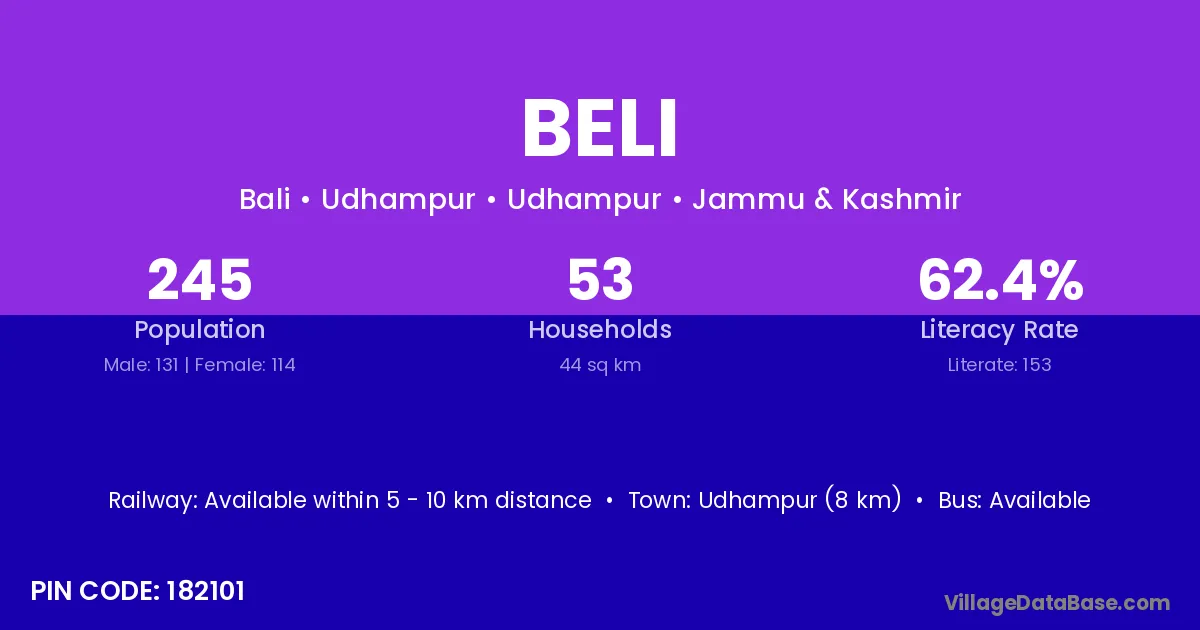 Panna (42 km) is the nearest town to Beli village for major economic activities and is located approximately 42 km away.