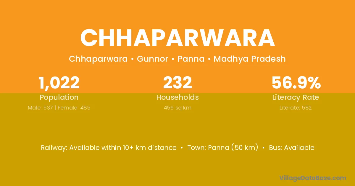 Panna (50 km) is the nearest town to Chhaparwara village for major economic activities and is located approximately 50 km away.