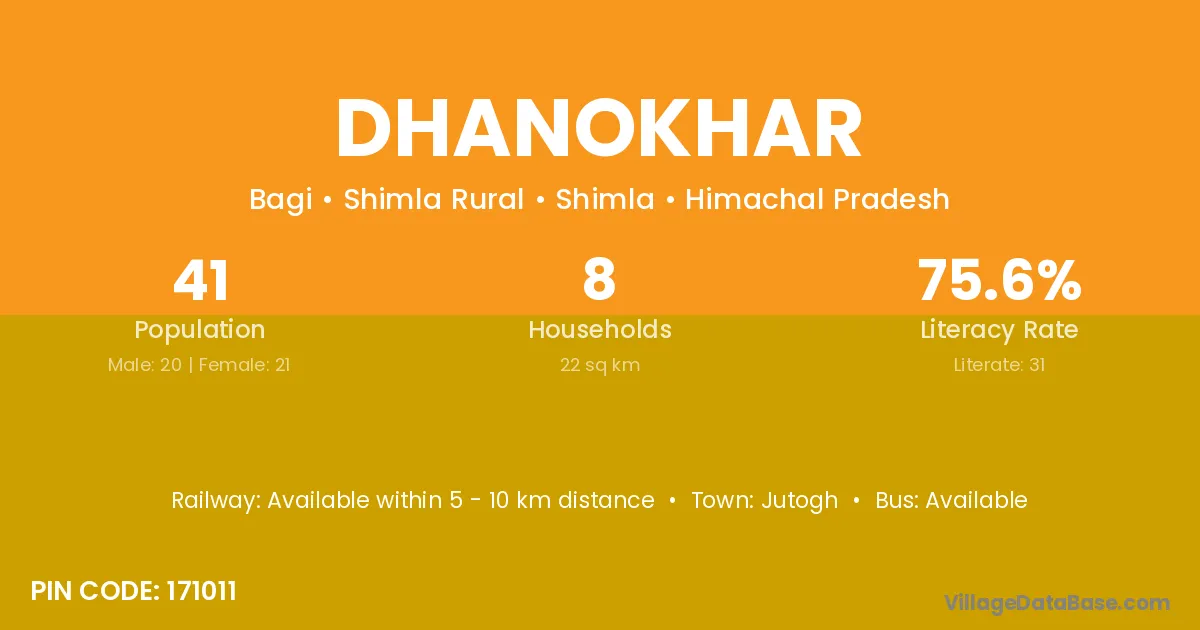 Dhanokhar village has a total population of 735 people, of which 362 are males and 373 are females.