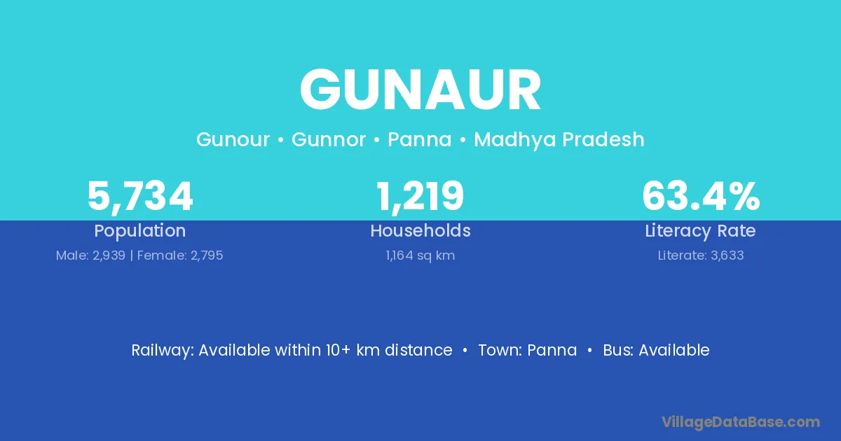 Gunaur village has a total population of 5,734 people, of which 2,939 are males and 2,795 are females.