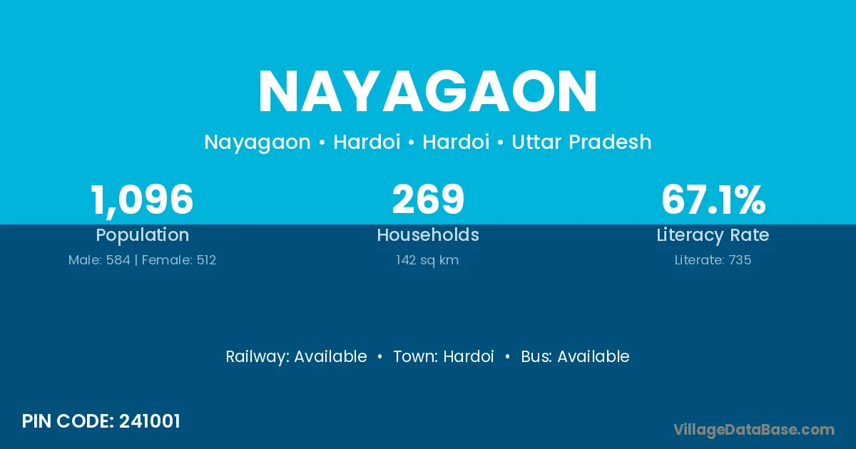 Nayagaon village has a total population of 1,375 people, of which 721 are males and 654 are females.