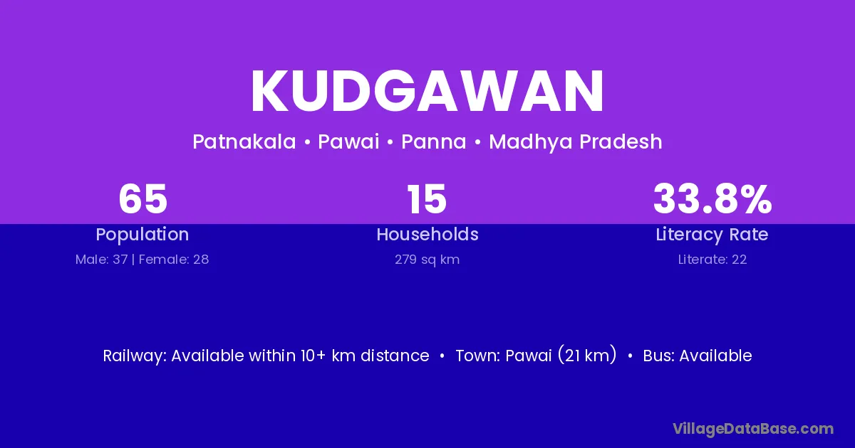 Pawai (21 km) is the nearest town to Kudgawan village for major economic activities and is located approximately 21 km away.