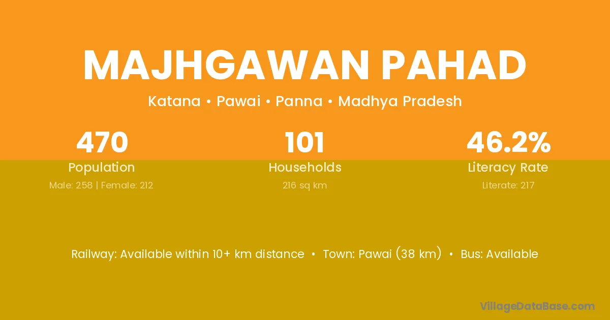 Pawai (38 km) is the nearest town to Majhgawan Pahad village for major economic activities and is located approximately 38 km away.