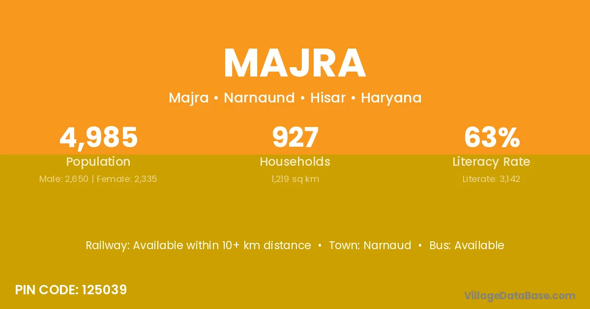 Amanganj (35 km) is the nearest town to Majra village for major economic activities and is located approximately 35 km away.