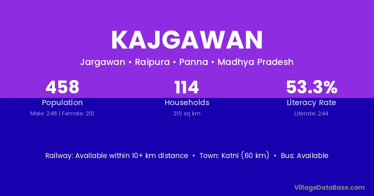 Katni (60 km) is the nearest town to Kajgawan village for major economic activities and is located approximately 60 km away.