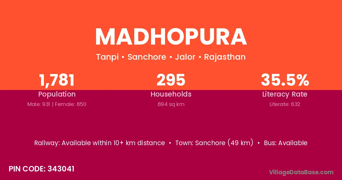 The literacy rate of Madhopura village is 59.27%. Male literacy stands at 71.01% and female literacy at 45.45%.