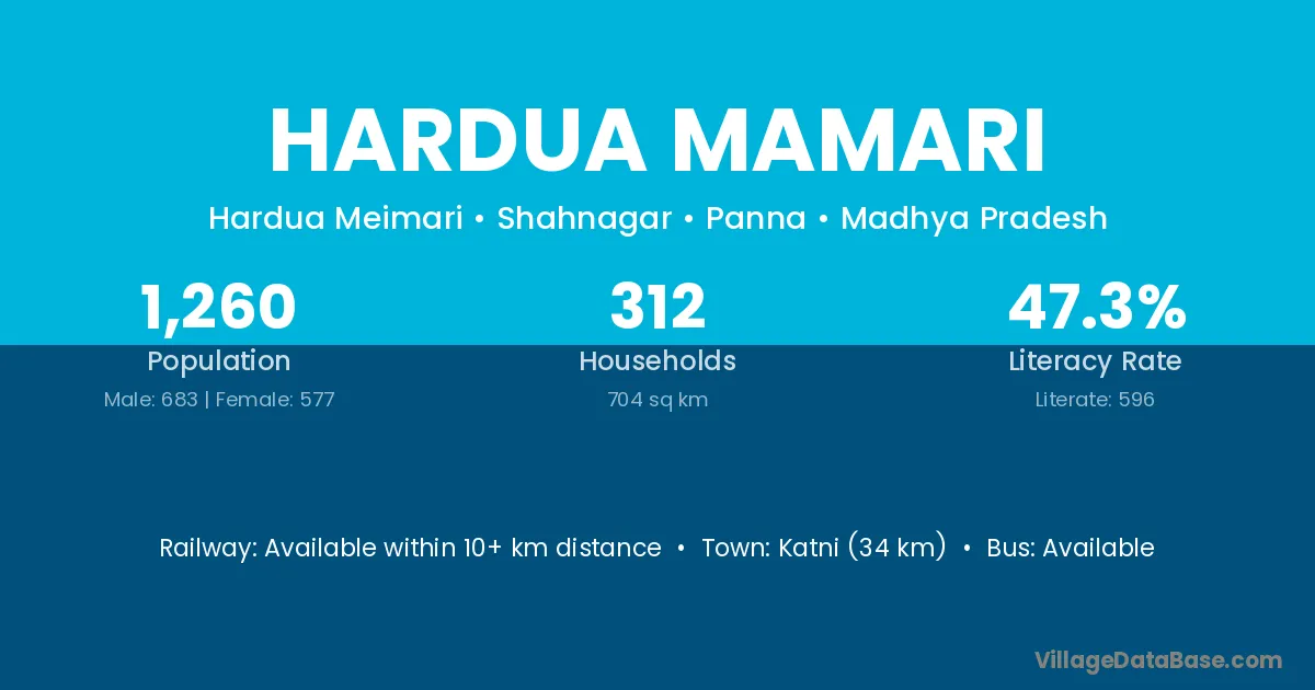 Katni (34 km) is the nearest town to Hardua Mamari village for major economic activities and is located approximately 34 km away.