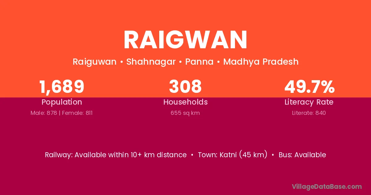 Katni (45 km) is the nearest town to Raigwan village for major economic activities and is located approximately 45 km away.