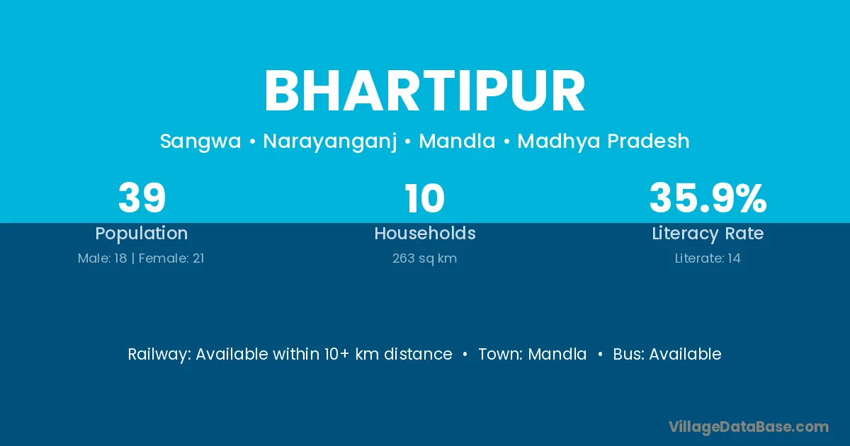 The literacy rate of Bhartipur village is 44.51%. Male literacy stands at 57.86% and female literacy at 33.87%.