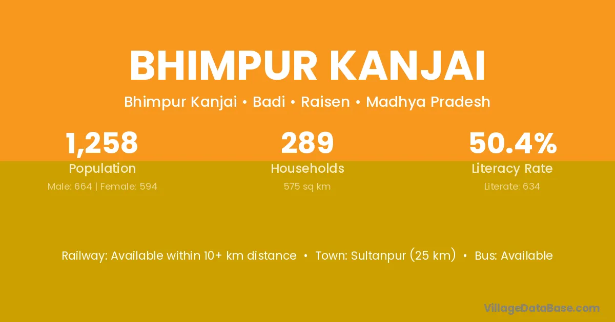 Bhimpur Kanjai village has a total population of 1,258 people, of which 664 are males and 594 are females.
