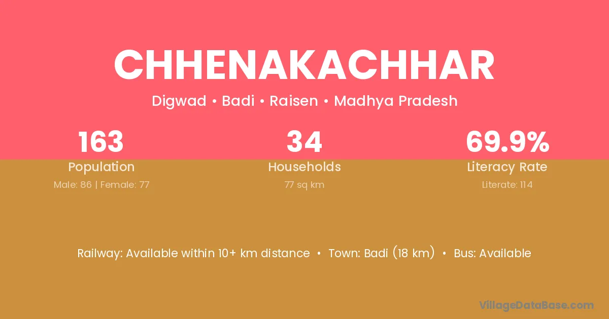 Chhenakachhar village has a total population of 163 people, of which 86 are males and 77 are females.