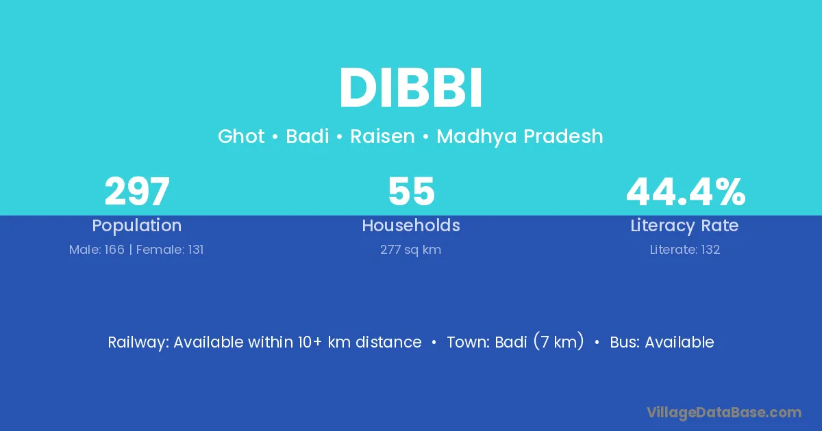 Badi (7 km) is the nearest town to Dibbi village for major economic activities and is located approximately 7 km away.