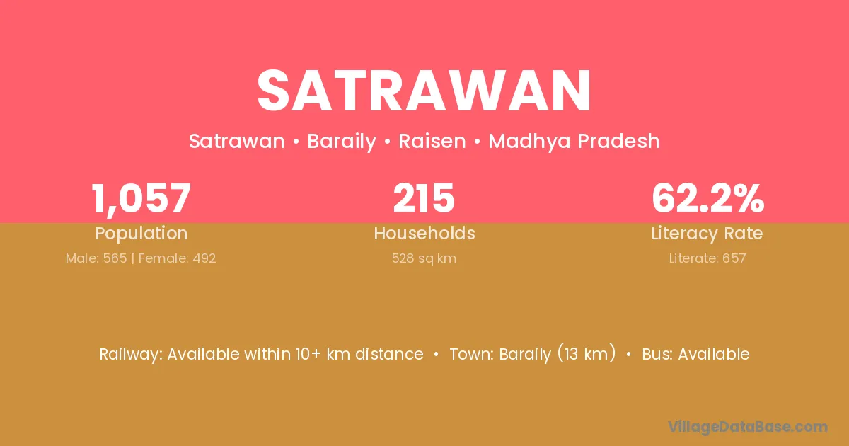 Baraily (13 km) is the nearest town to Satrawan village for major economic activities and is located approximately 13 km away.