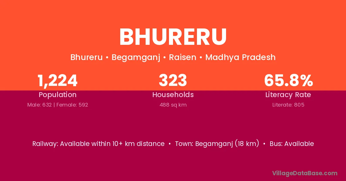 Begamganj (18 km) is the nearest town to Bhureru village for major economic activities and is located approximately 18 km away.