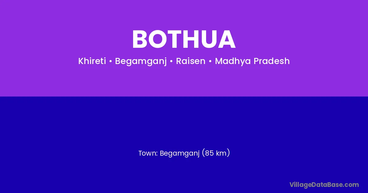 Begamganj (85 km) is the nearest town to Bothua village for major economic activities and is located approximately 85 km away.
