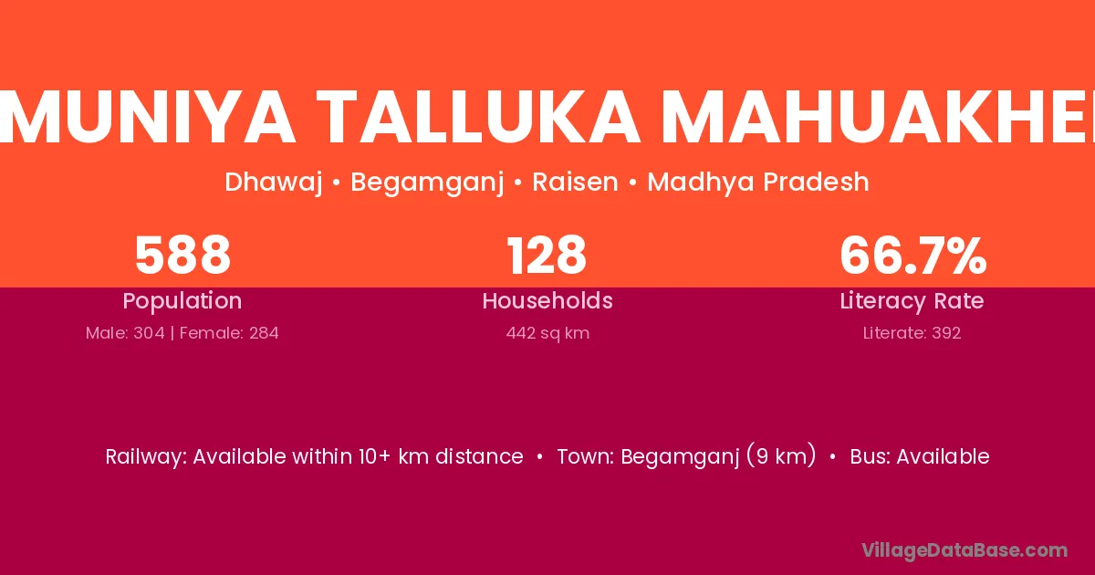 Jamuniya Talluka Mahuakheda village has a total population of 588 people, of which 304 are males and 284 are females.