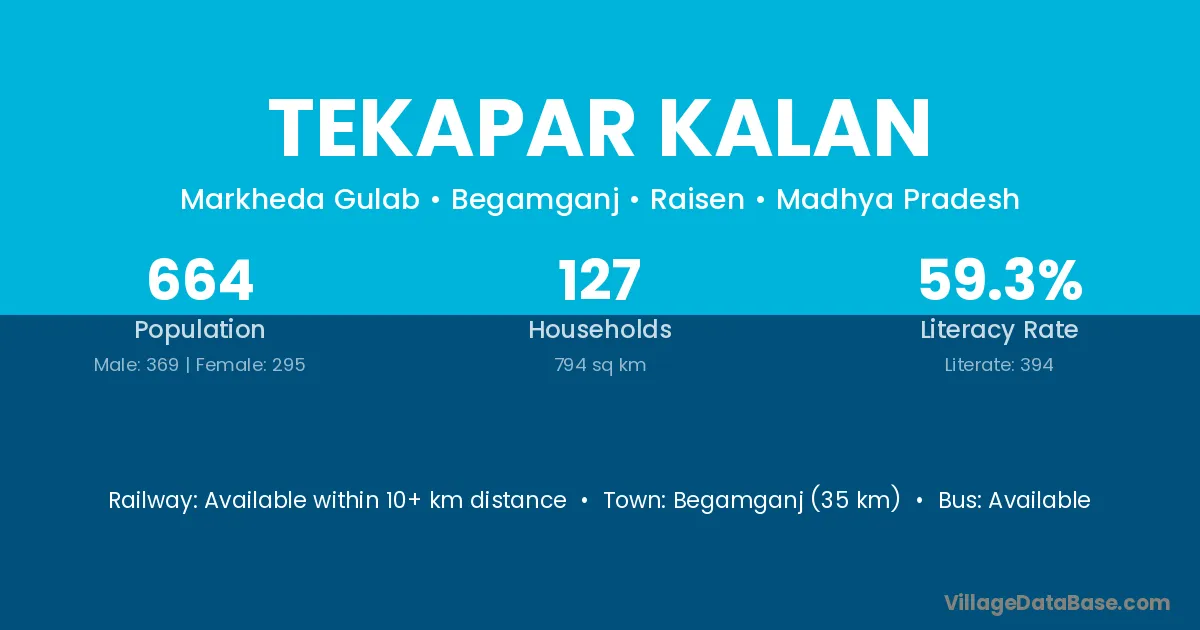 Begamganj (35 km) is the nearest town to Tekapar Kalan village for major economic activities and is located approximately 35 km away.