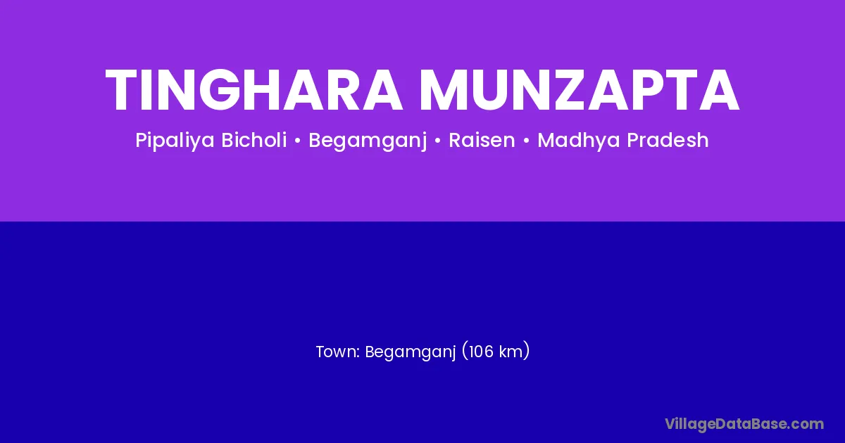 Begamganj (106 km) is the nearest town to Tinghara Munzapta village for major economic activities and is located approximately 106 km away.