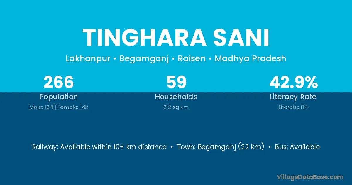 Begamganj (22 km) is the nearest town to Tinghara Sani village for major economic activities and is located approximately 22 km away.