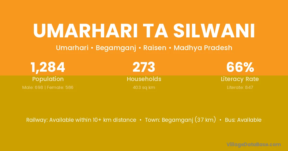 Begamganj (37 km) is the nearest town to Umarhari Ta Silwani village for major economic activities and is located approximately 37 km away.