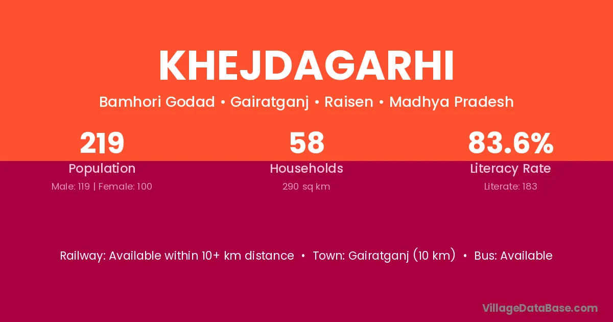 Khejdagarhi village has a total population of 219 people, of which 119 are males and 100 are females.