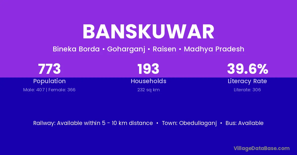 Banskuwar village has a total population of 773 people, of which 407 are males and 366 are females.
