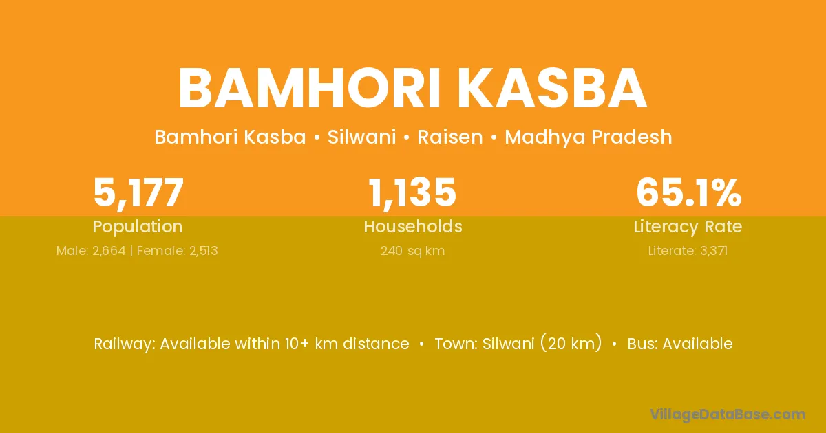 Silwani (20 km) is the nearest town to Bamhori Kasba village for major economic activities and is located approximately 20 km away.