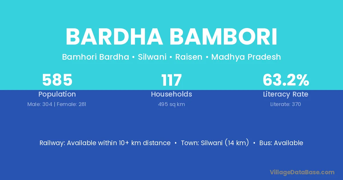 Silwani (14 km) is the nearest town to Bardha Bambori village for major economic activities and is located approximately 14 km away.