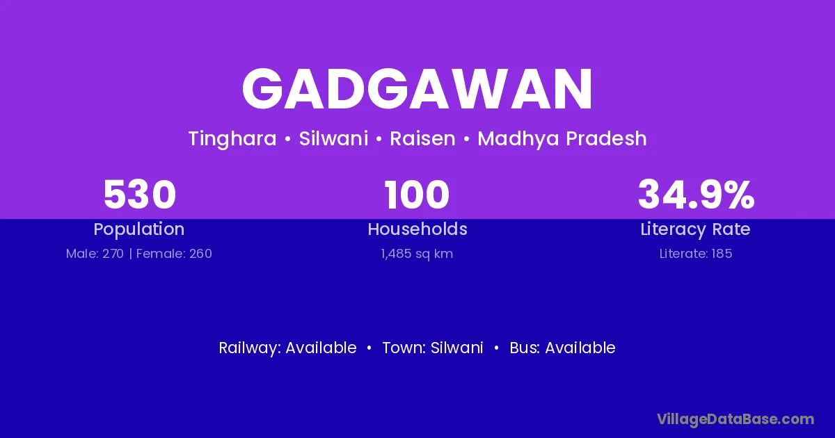 Gadgawan village has a total population of 530 people, of which 270 are males and 260 are females.