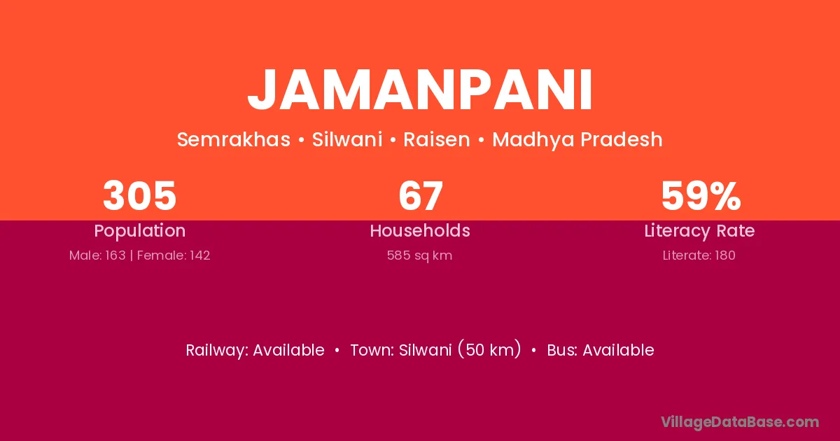Silwani (50 km) is the nearest town to Jamanpani village for major economic activities and is located approximately 50 km away.