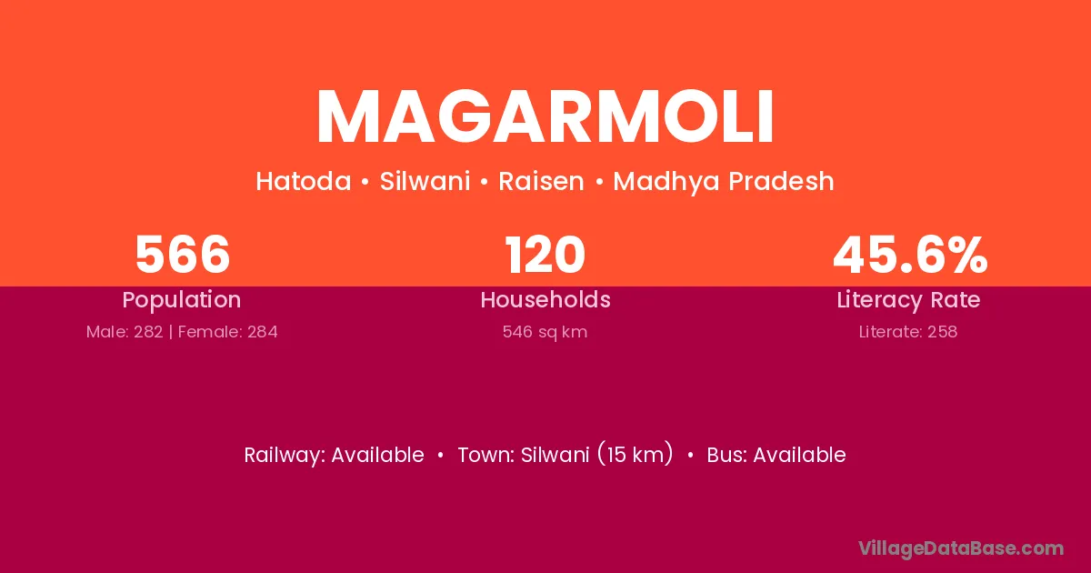 Silwani (15 km) is the nearest town to Magarmoli village for major economic activities and is located approximately 15 km away.