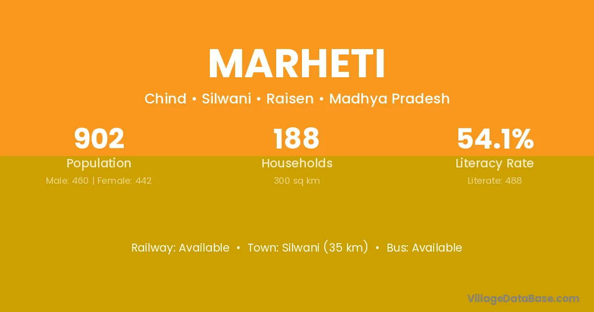 Silwani (35 km) is the nearest town to Marheti village for major economic activities and is located approximately 35 km away.