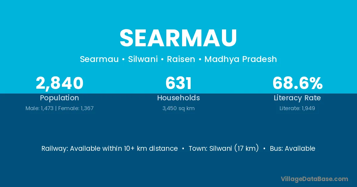 Silwani (17 km) is the nearest town to Searmau village for major economic activities and is located approximately 17 km away.