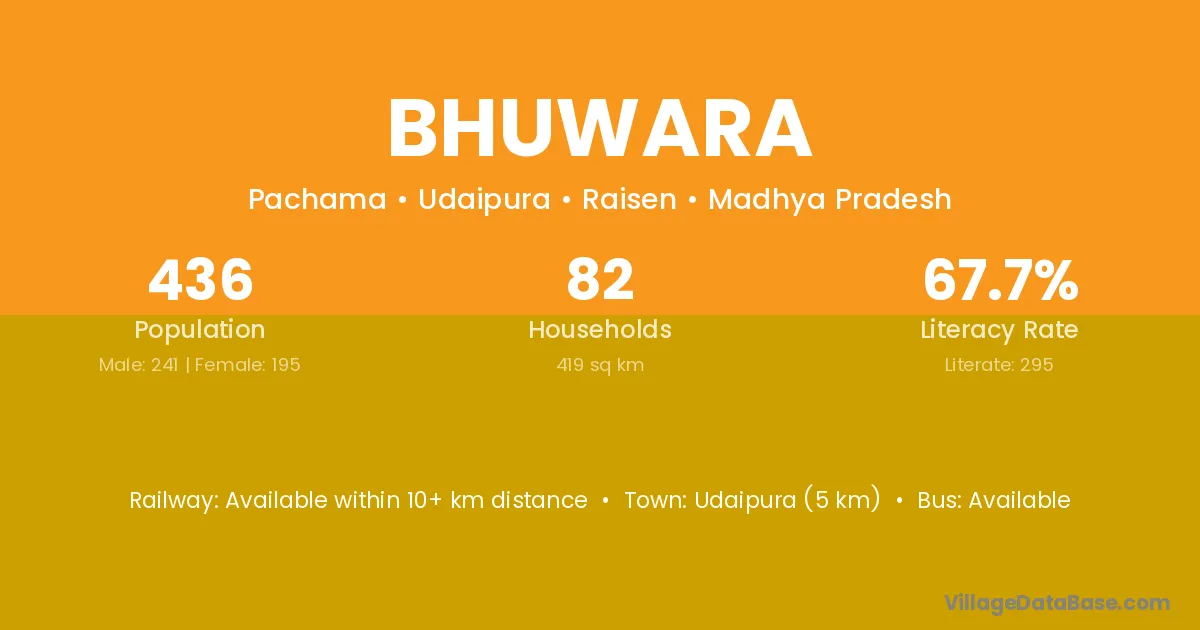 Bhuwara village has a total population of 436 people, of which 241 are males and 195 are females.