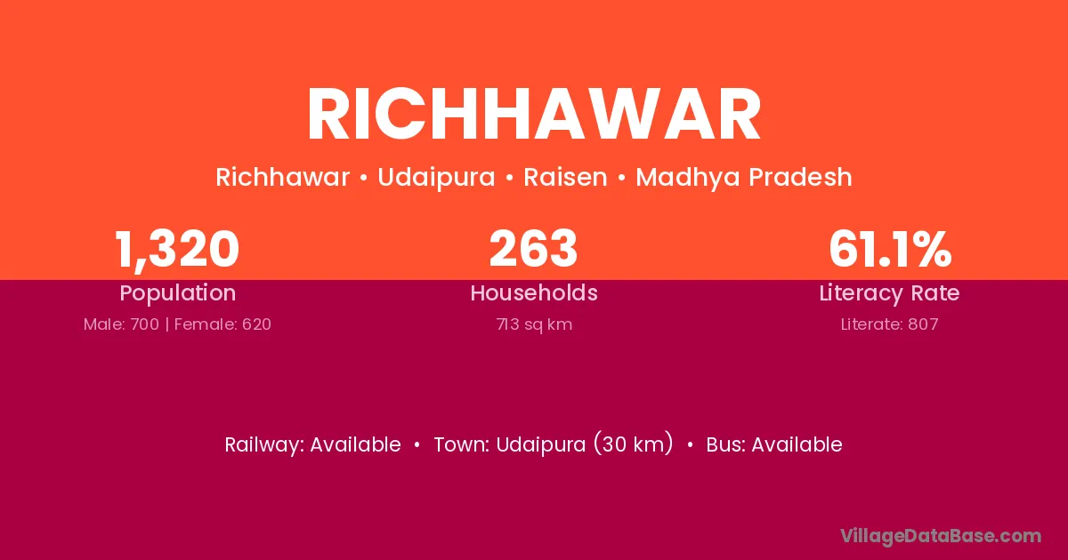 Richhawar village has a total population of 1,320 people, of which 700 are males and 620 are females.