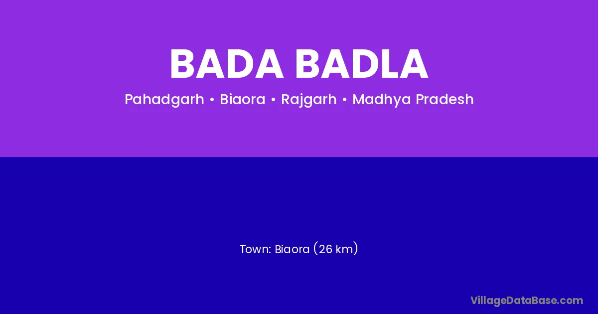 Biaora (26 km) is the nearest town to Bada Badla village for major economic activities and is located approximately 26 km away.
