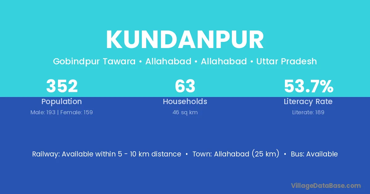 The literacy rate of Kundanpur village is 37.93%. Male literacy stands at 52.63% and female literacy at 23.73%.