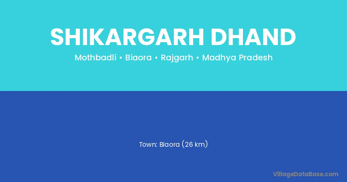 Biaora (26 km) is the nearest town to Shikargarh Dhand village for major economic activities and is located approximately 26 km away.