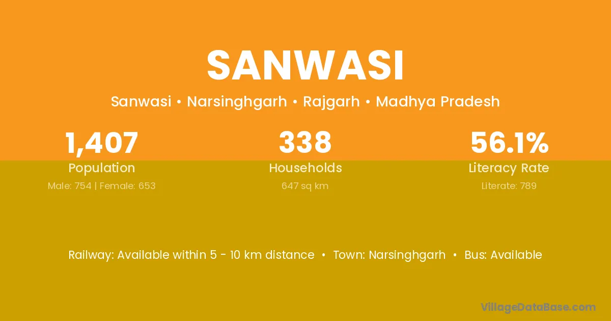 Sanwasi village has a total population of 1,407 people, of which 754 are males and 653 are females.