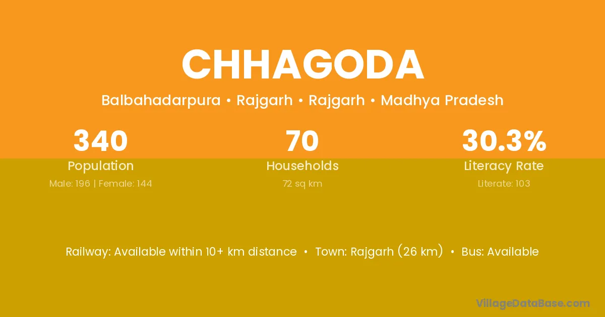 Rajgarh (26 km) is the nearest town to Chhagoda village for major economic activities and is located approximately 26 km away.