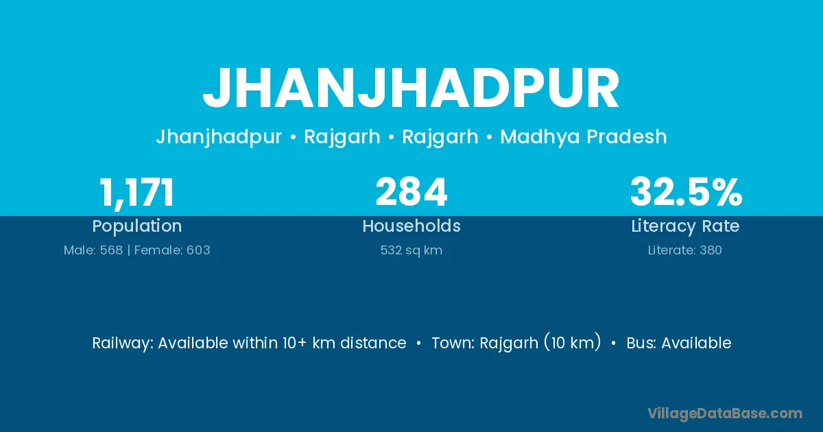 Rajgarh (10 km) is the nearest town to Jhanjhadpur village for major economic activities and is located approximately 10 km away.