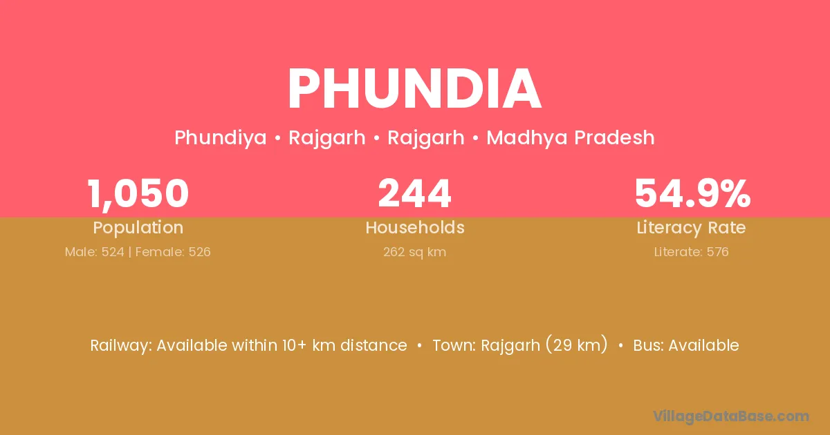 Rajgarh (29 km) is the nearest town to Phundia village for major economic activities and is located approximately 29 km away.