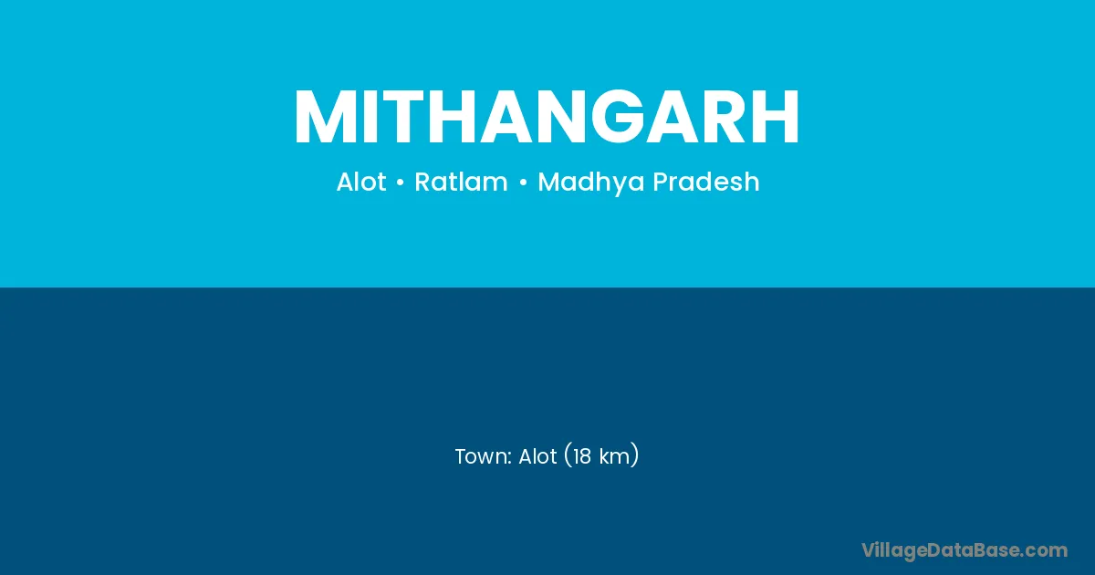 Alot (18 km) is the nearest town to Mithangarh village for major economic activities and is located approximately 18 km away.