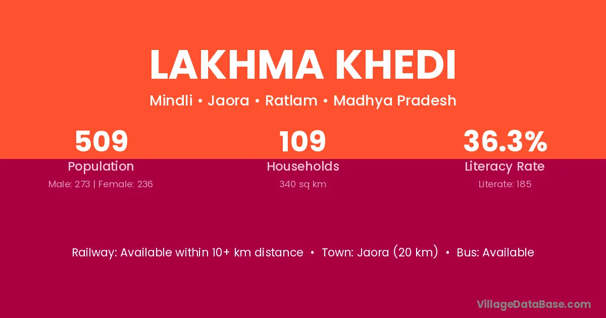 Jaora (20 km) is the nearest town to Lakhma Khedi village for major economic activities and is located approximately 20 km away.