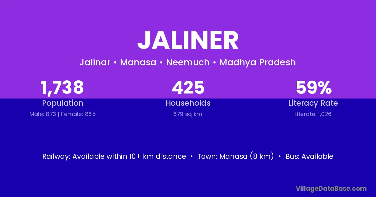 Piploda (15 km) is the nearest town to Jaliner village for major economic activities and is located approximately 15 km away.