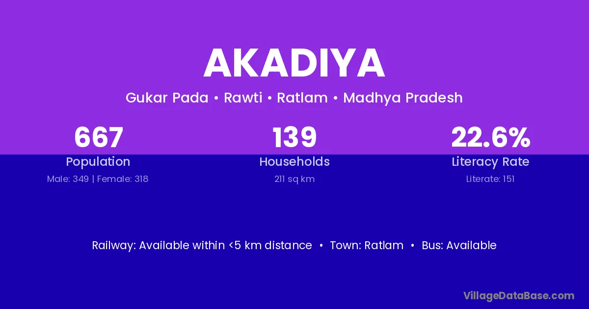 Ratlam is the nearest town to Akadiya village for major economic activities