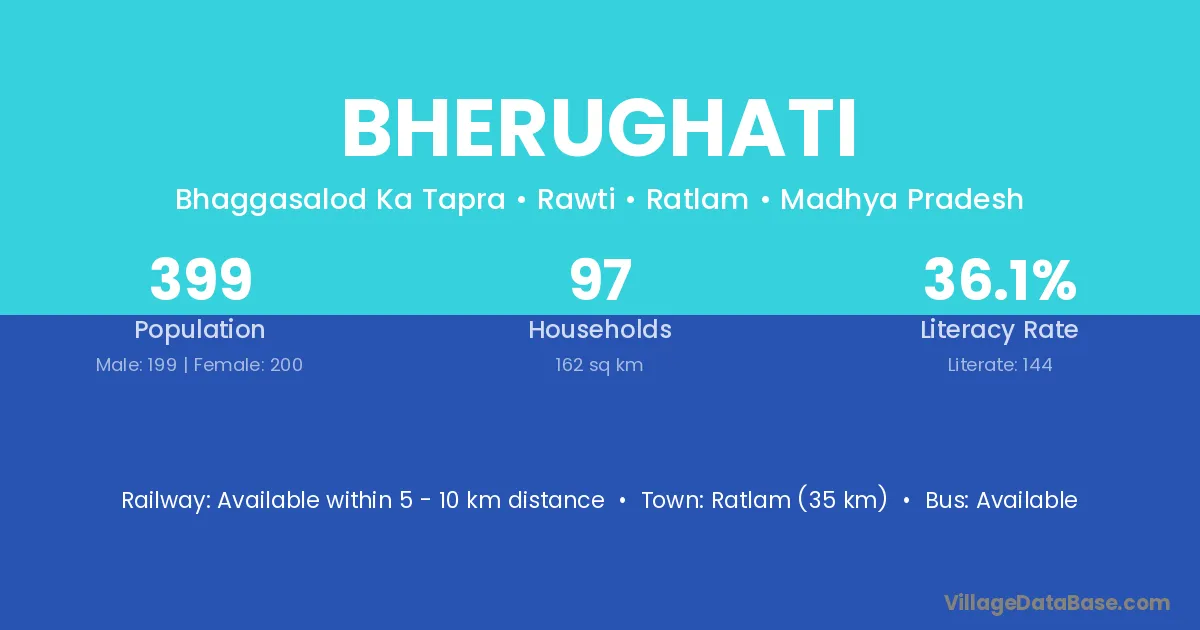 Ratlam (35 km) is the nearest town to Bherughati village for major economic activities and is located approximately 35 km away.