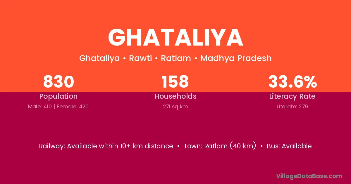 Ghataliya village has a total population of 830 people, of which 410 are males and 420 are females.