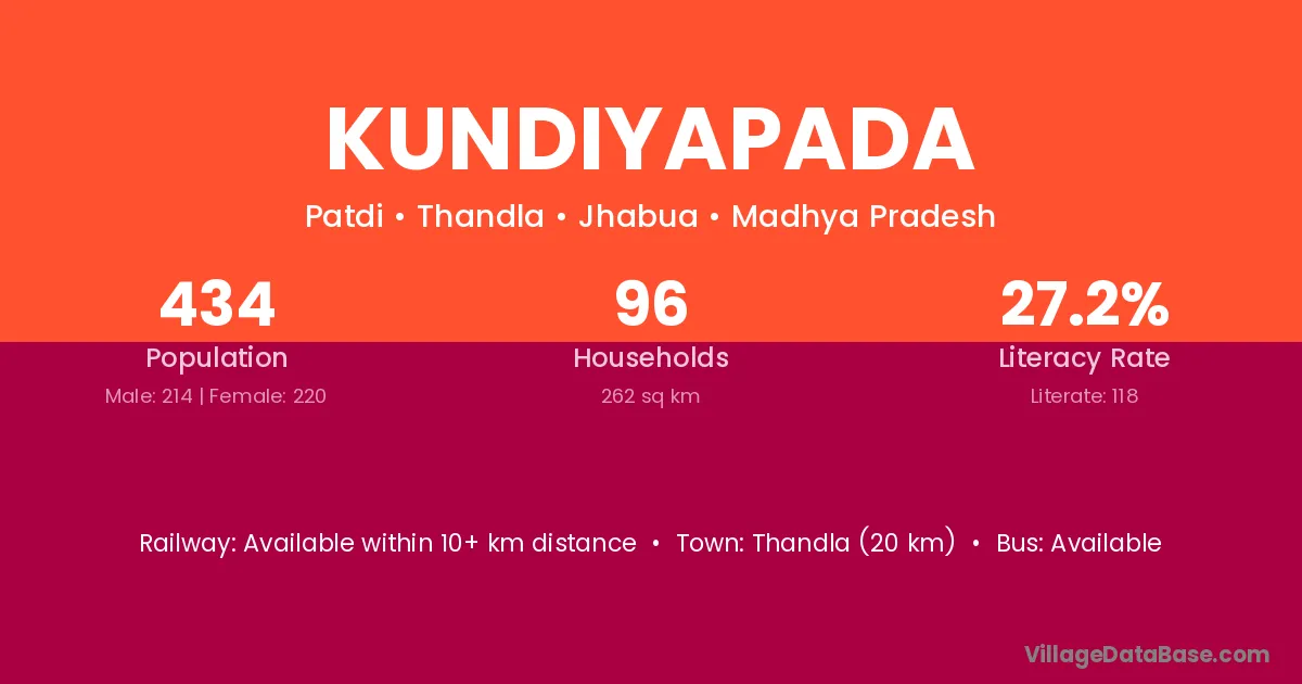 Ratlam (53 km) is the nearest town to Kundiyapada village for major economic activities and is located approximately 53 km away.